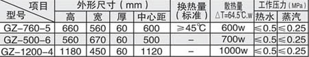 鑄鐵式系列換散熱水器 內(nèi)腔潔凈地粘砂,承壓高、耐腐蝕、壽命長、薄型設(shè)計,外形美觀大方,經(jīng)濟(jì)實用、大眾消費,貴族享受 技術(shù)參數(shù)表 |