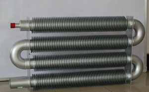 我公司在工業(yè)翅片管在原有散熱效果好的基礎(chǔ)上,開發(fā)研制了不使用老套的擋板做封頭,更換為大于散熱器主管的光管為封頭,在原有散熱量基礎(chǔ)上不僅僅又一次提高了散熱效果,關(guān)鍵的是散熱器承壓能力增加,散熱器管徑比較粗,供水試壓瞬間壓力大,避免老套的擋板封頭突鼓爆裂的眾多現(xiàn)象。